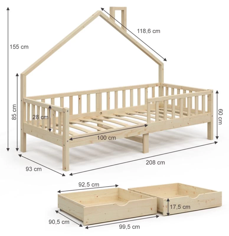 - Contenu de la livraison : • 1x lit enfant• 2x tiroir• 1x matelas Décoration non incluse