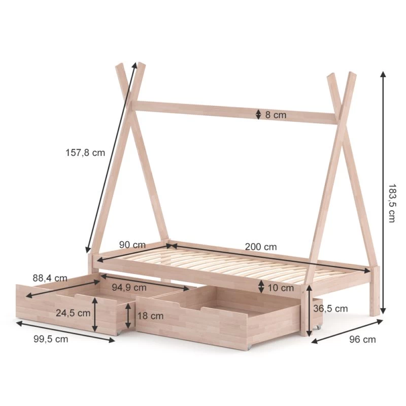 - Contenu de la livraison : • 1x lit pour enfant • 2x tiroirs Décoration non incluse
