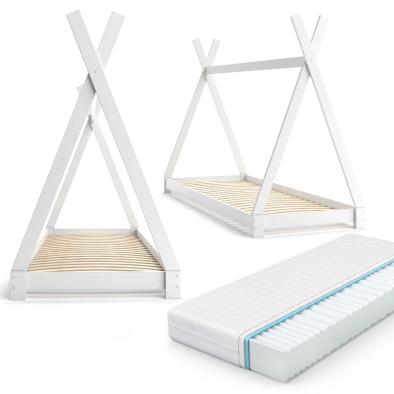 - Contenu de la livraison : • 1x lit cabane Tipi + matelasDécoration non incluse