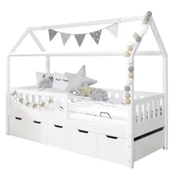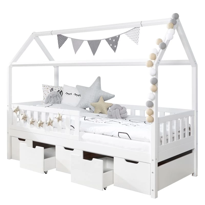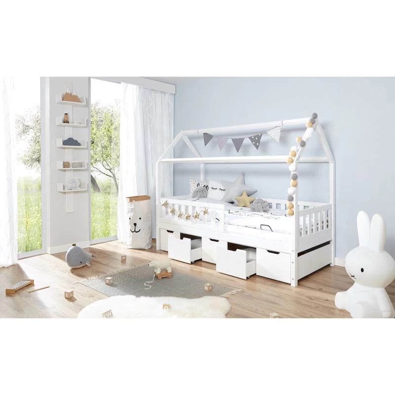 - Contenu de la livraison : Lit cabane avec 5 tiroirs de lit (sans matelas ni sommier, coussins ou décoration)