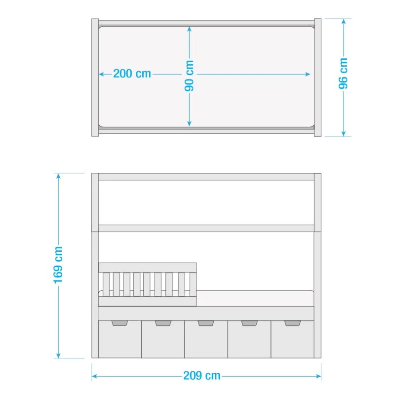 - Surface de couchage : 90 x 200cm