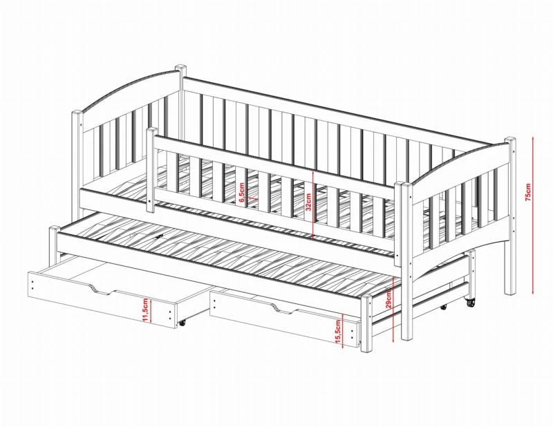- Contenu de la livraison : Lit d’enfant x 1 / tiroirs : Inclus x 2 / Armoire : Inclus / Matelas : Non inclus dans le set