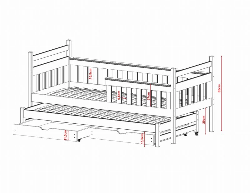 - Contenu de la livraison : Lit d’enfant x 1 / tiroirs : Inclus x 2 / Armoire : Inclus / Matelas : Non inclus dans le set