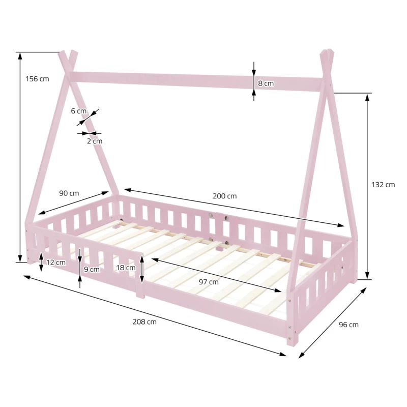 - Contenu de la livraison : 1x lit denfant Tipi avec protection contre les chutes, sommier à lattes et instructions de montage