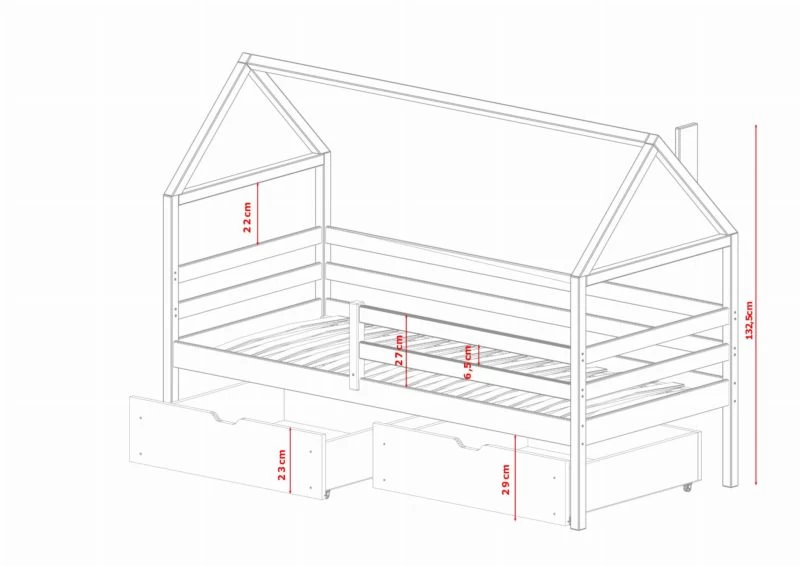 - Contenu de la livraison : Lit de maison x 1 / tiroirs : Inclus x 2 / Armoire : Inclus / Matelas : Non inclus dans le set