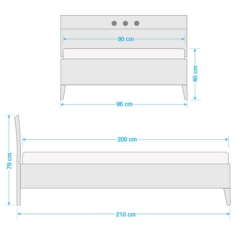 - Surface de couchage : 90 x 200cm
