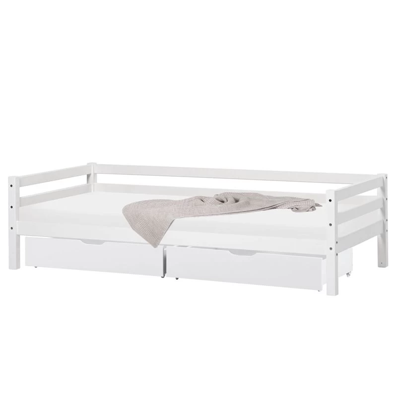- Contenu de la livraison : 1 lit enfant 90 x 200 cm avec sommier à lattes enroulable, protection contre les chutes de 3 côtés, 2 tiroirs Hoppekids Basic, 1 matelas en mousse de 90 x 200 cm, 1 housse pour matelas de 90 x 200 cm en coton