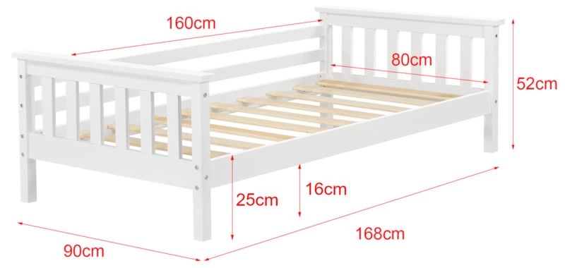 - Contenu de la livraison : 1 x lit enfant – 1 x sommier à lattes – 1 x matelas (l’oreiller, la couverture et les autres objets de décoration ne font pas partie de l’offre)