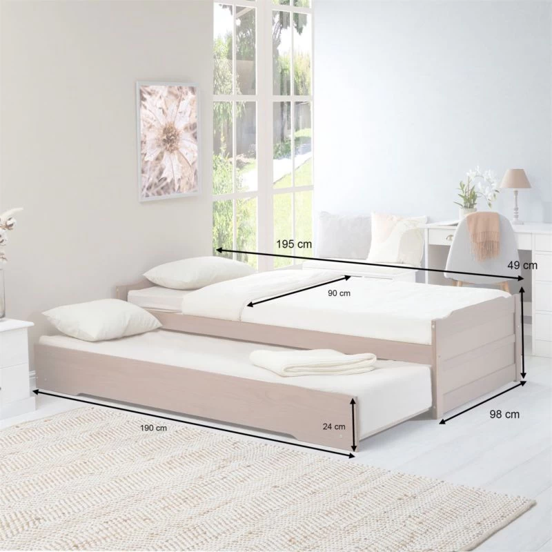- Contenu de la livraison : 1 x LORENA Lit gigogne avec tiroir-lit 190 x 90 cm