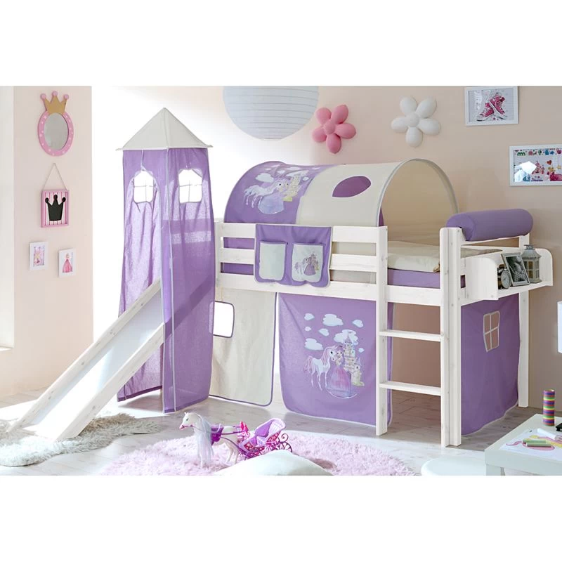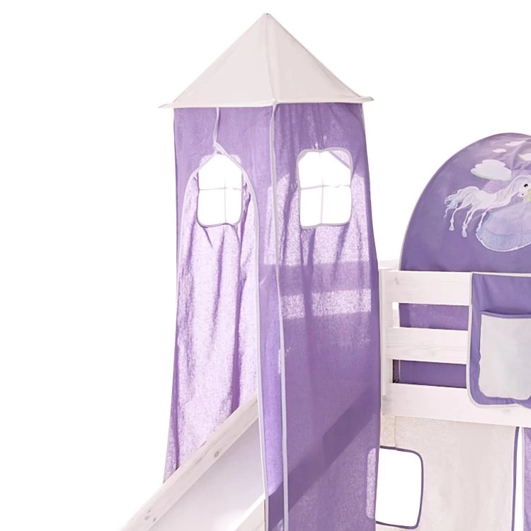 - Le modèle de base avec rideau, tour et toboggan devient un terrain de jeu idéal dans la chambre d’enfant