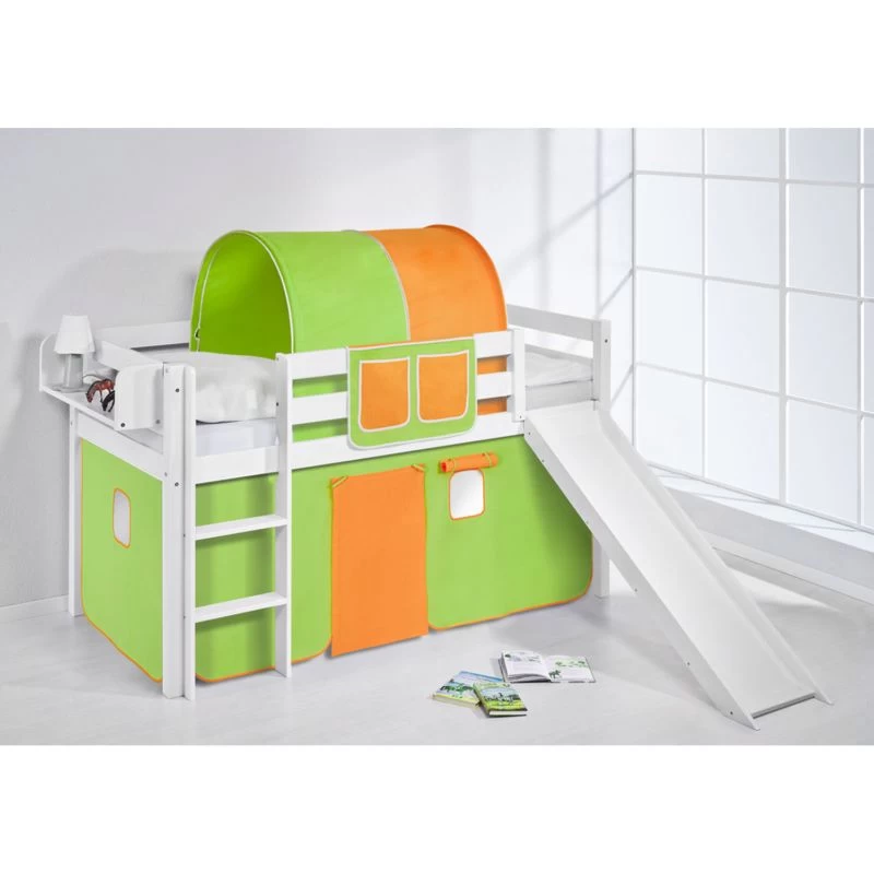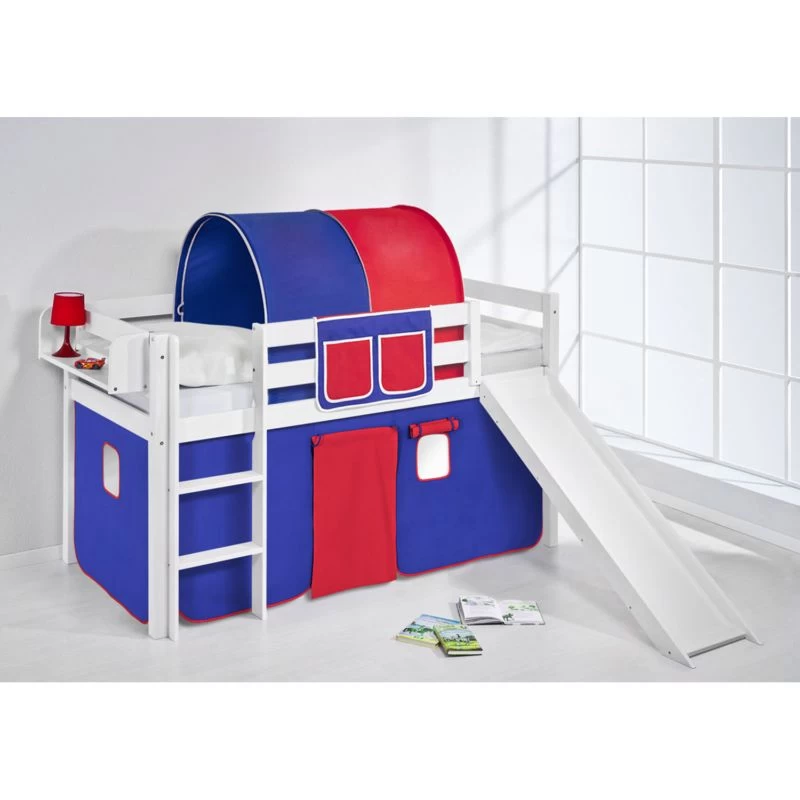 - Contenu de la livraison : Lit mezzanine JELLE avec toboggan, incluant 2 rideaux