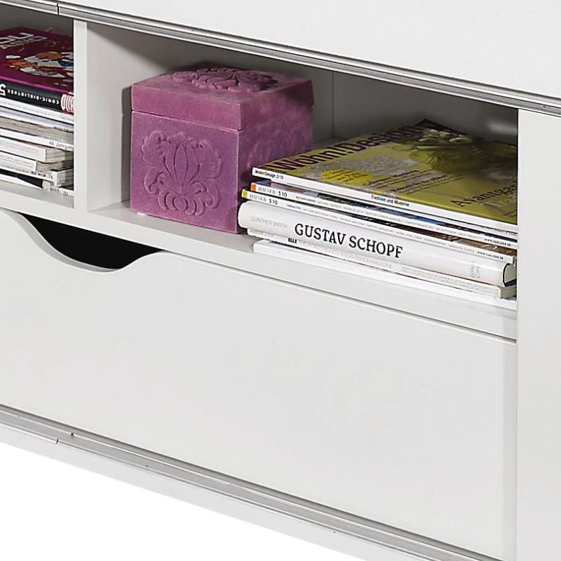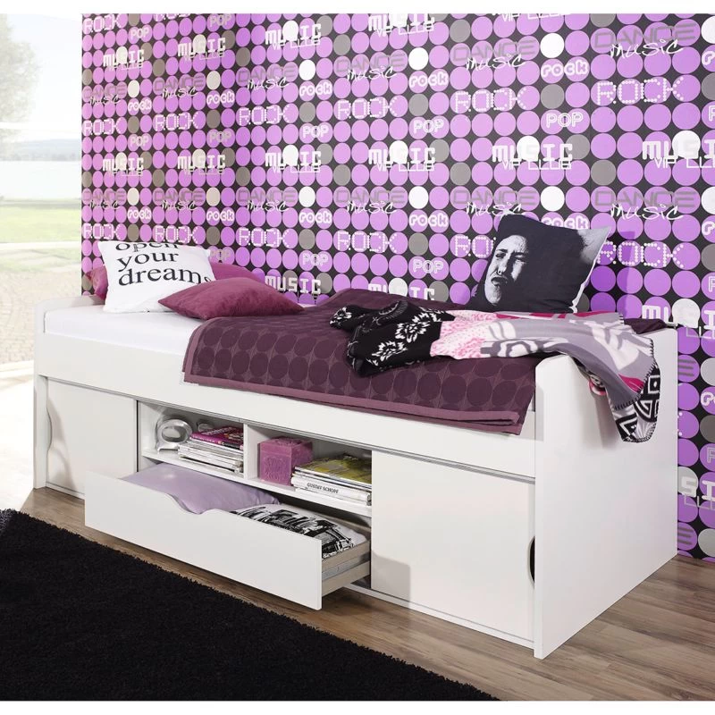 - Lit multi-rangements avec 2 portes coulissantes à gauche et à droite, 2 compartiments ouverts et 1 tiroir