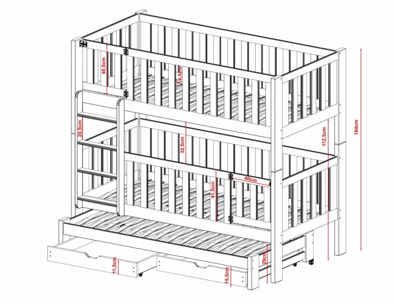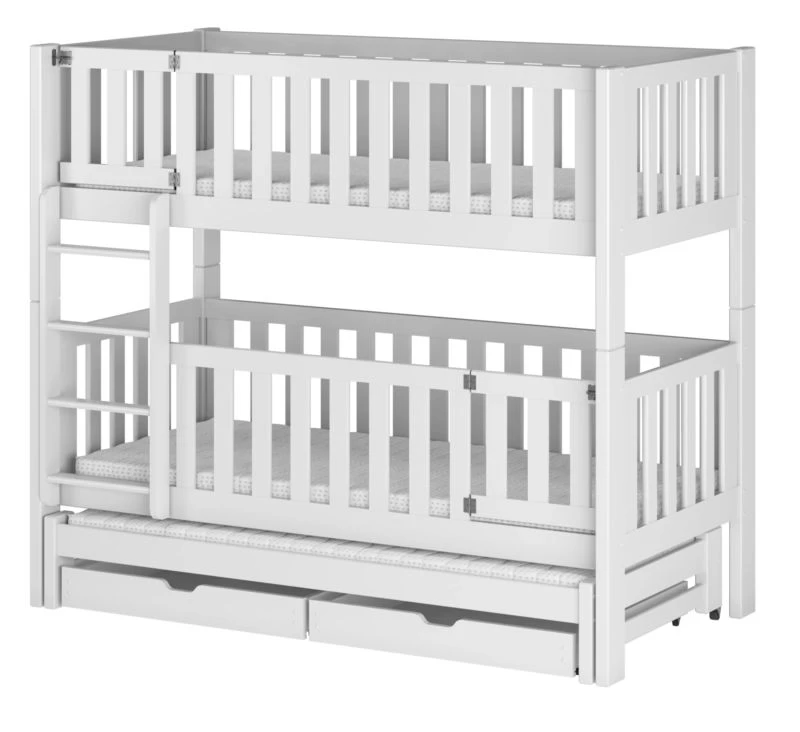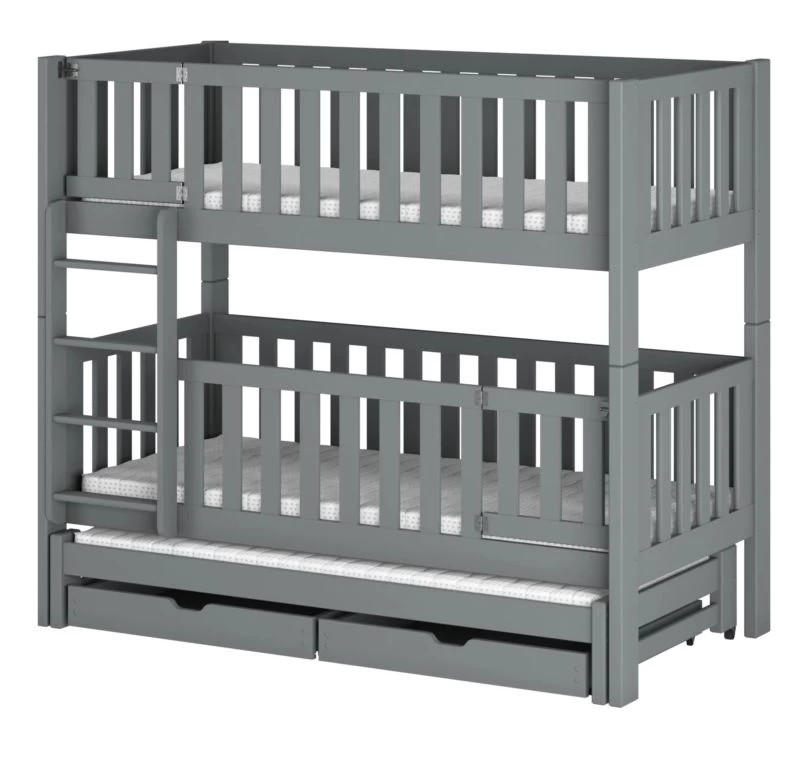 - Contenu de la livraison : Lit superposé x 1 / tiroirs : Inclus x 2 / Armoires : Inclus / Matelas : Non inclus dans le set