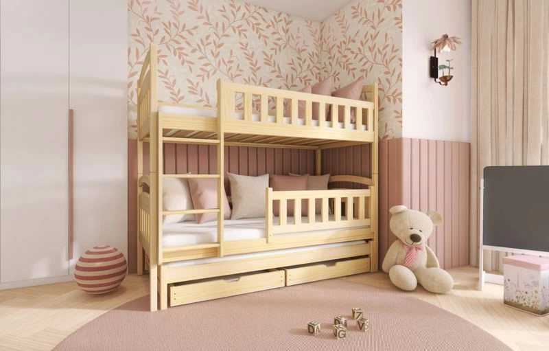 - Contenu de la livraison : Lit superposé x 1 / tiroirs : Inclus x 2 / Armoires : Inclus / Matelas : Non inclus dans le set