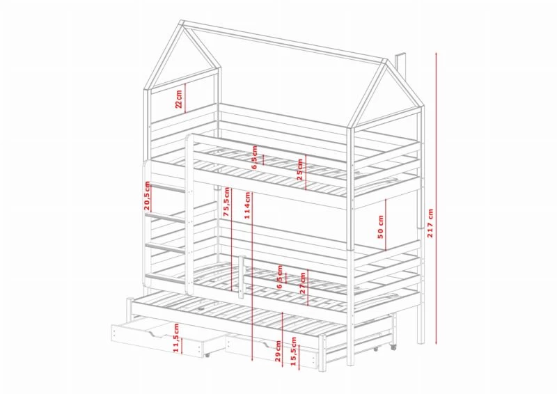 - Contenu de la livraison : Lit superposé x 1 / tiroirs : Inclus x 2 / Armoires : Inclus / Matelas : Non inclus dans le set