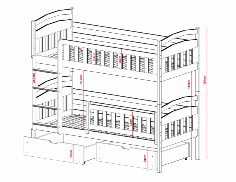 - Contenu de la livraison : Lit superposé x 1 / tiroirs : Inclus x 2 / Armoires : Inclus / Matelas : Non inclus dans le set