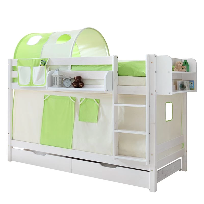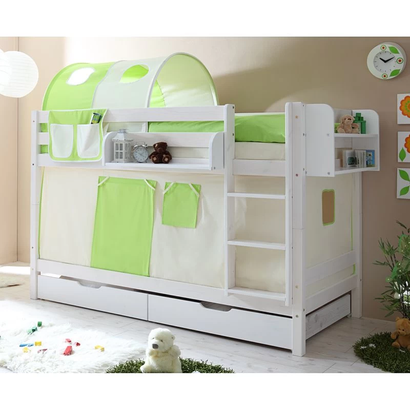 - Lit superposé moderne et pratique en bois massif verni blanc