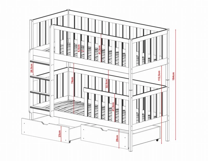 - Contenu de la livraison : Lit superposé x 1 / tiroirs : Inclus x 2 / Armoires : Inclus / Matelas : Non inclus dans le set