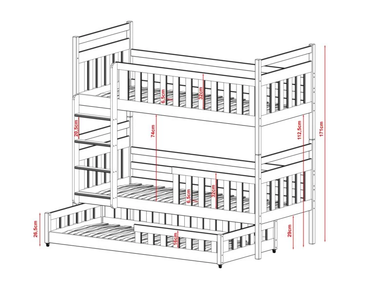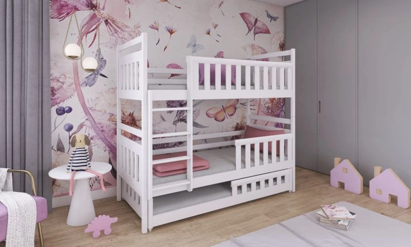 - Contenu de la livraison : Lit superposé x 1 / tiroirs : – / Armoire : Inclus / Matelas : Non inclus dans le set