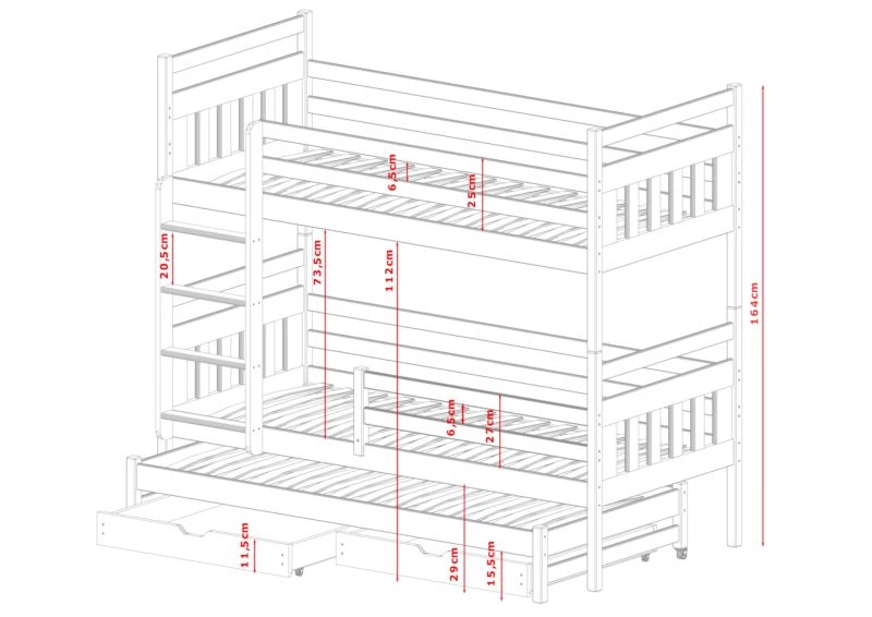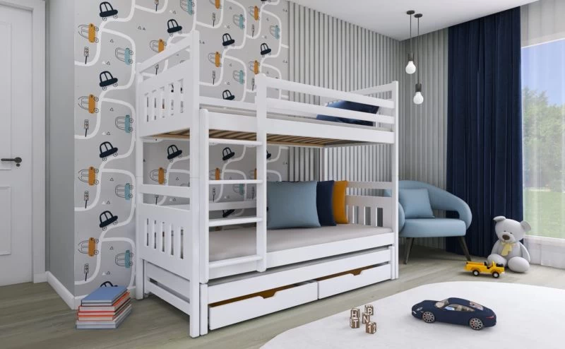 - Contenu de la livraison : Lit superposé x 1 / tiroirs : Inclus x 2 / Armoires : Inclus / Matelas : Non inclus dans le set