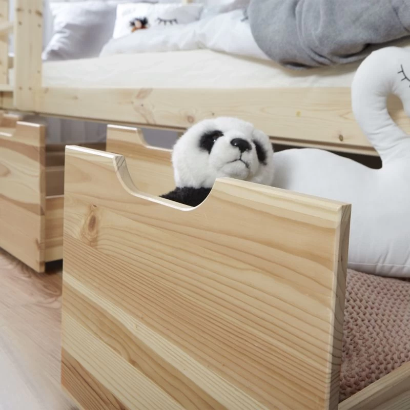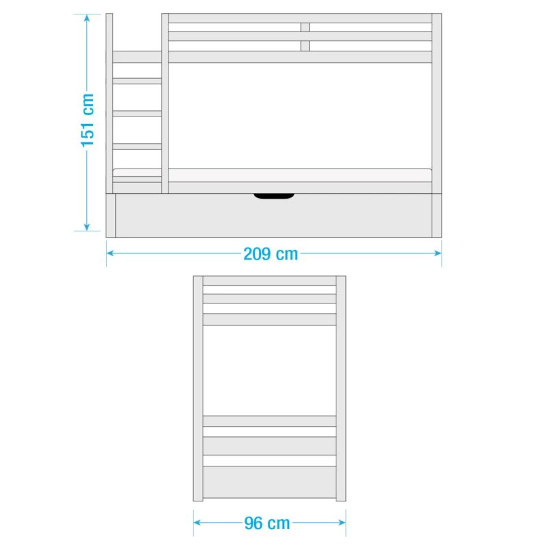 - Contenu de la livraison : Lit superposés avec lit d’appoint (sans matelas, sommier à lattes enroulables, coussins ni décoration)