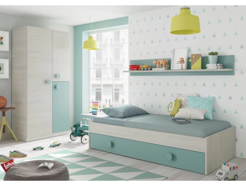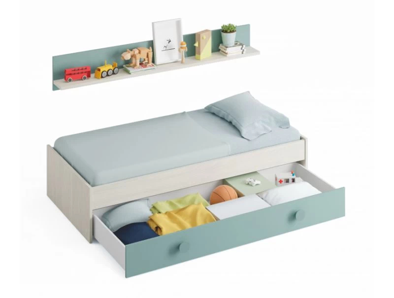 - Contenu de la livraison : 1 x Lit 1 tiroir sans sommier avec étagère murale L201 cm