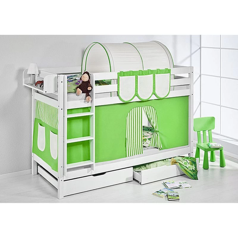 - Contenu de la livraison : Lits superposés JELLE Blanc 90 x 200 cm incluant 2 rideaux et 2 sommiers à lattes