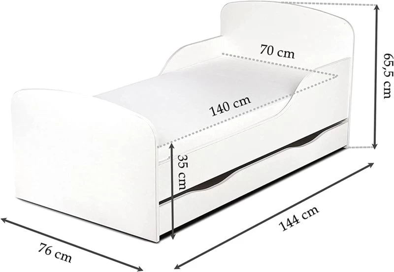 - Contenu de la livraison : structure de lit, sommier, matelas, un tiroir