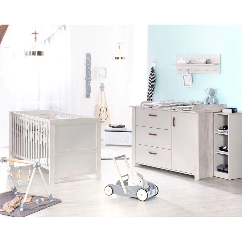 - Autres dimensions : Lit enfant évolutif : 76 x 144,5 x 82,5 cm ; commode à langer : 126 x 75 x 98,5 (L x H x P en cm)
