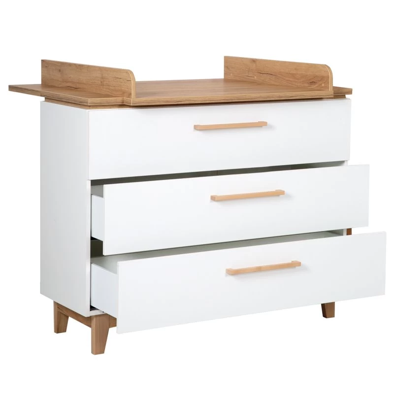 - Contenu de la livraison : largeur de la commode avec le plateau à langer, 3 portes, 3 tiroirs, tiroir supérieur à sortie complète, HxL : 104×117,5 cm, profondeur avec/sans plateau à langer : 78/41 cm, hauteur de la table à langer : 94 cm, plateau à langer montable à droite/milieu/gauche