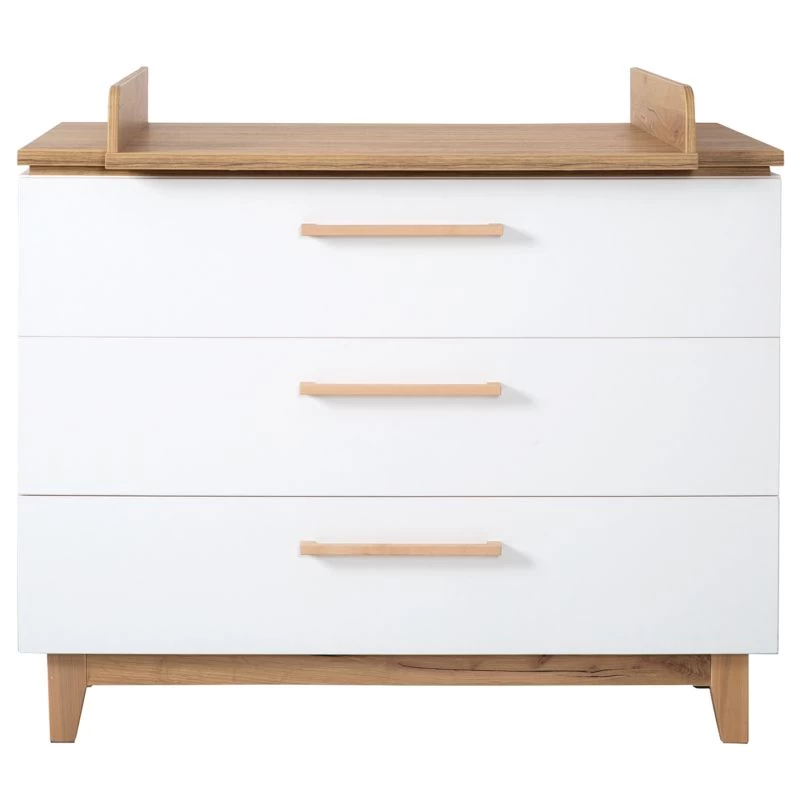 - Poignées : hêtre massif, plan à langer : panneau aggloméré mélaminé