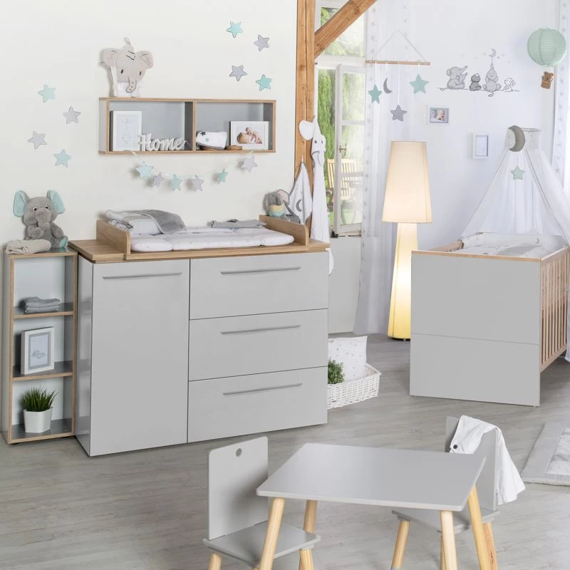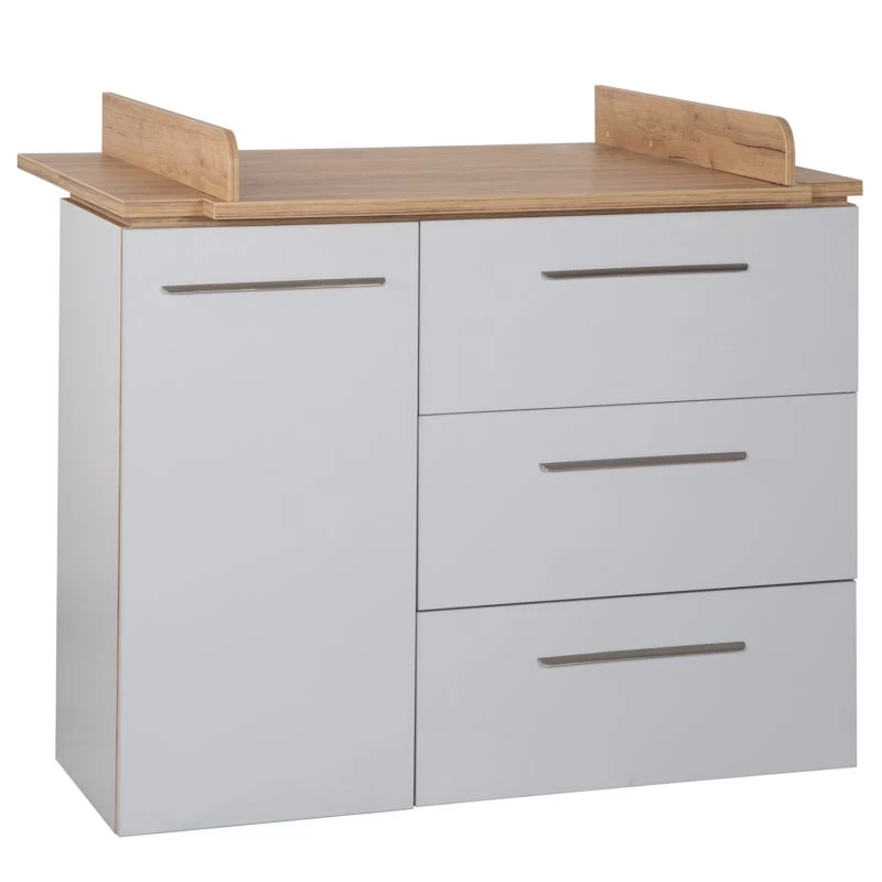 - Contenu de la livraison : Largeur de la commode avec le plateau à langer, 1 porte, 3 tiroirs, tiroir supérieur à sortie complète, HxL : 103×103 cm, profondeur avec/sans plateau à langer : 78/41 cm, hauteur de la table à langer : 94 cm, plateau à langer montable à droite/milieu/gauche
