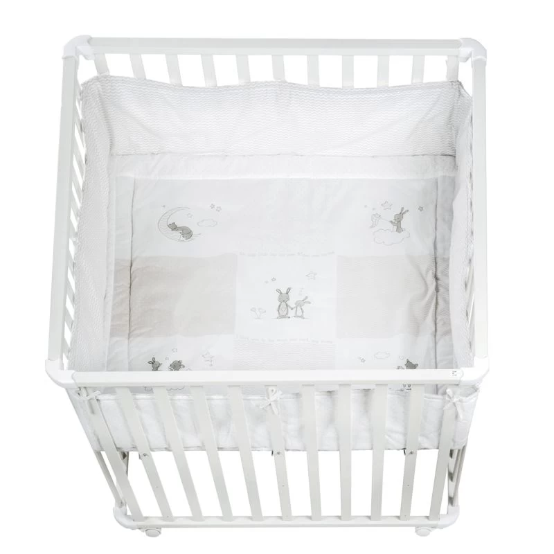 - Surface de couchage : MDF / Cadre : bois lamellé / Barrières latérales : contreplaqué, tissu : 65 % polyester, 35 % coton / Rembourrage : polyester intissé, motif imprimé